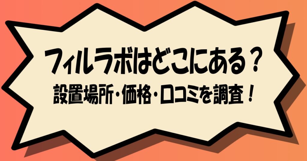 【2025最新】フィルラボはどこにある?設置場所・価格・口コミを調査!